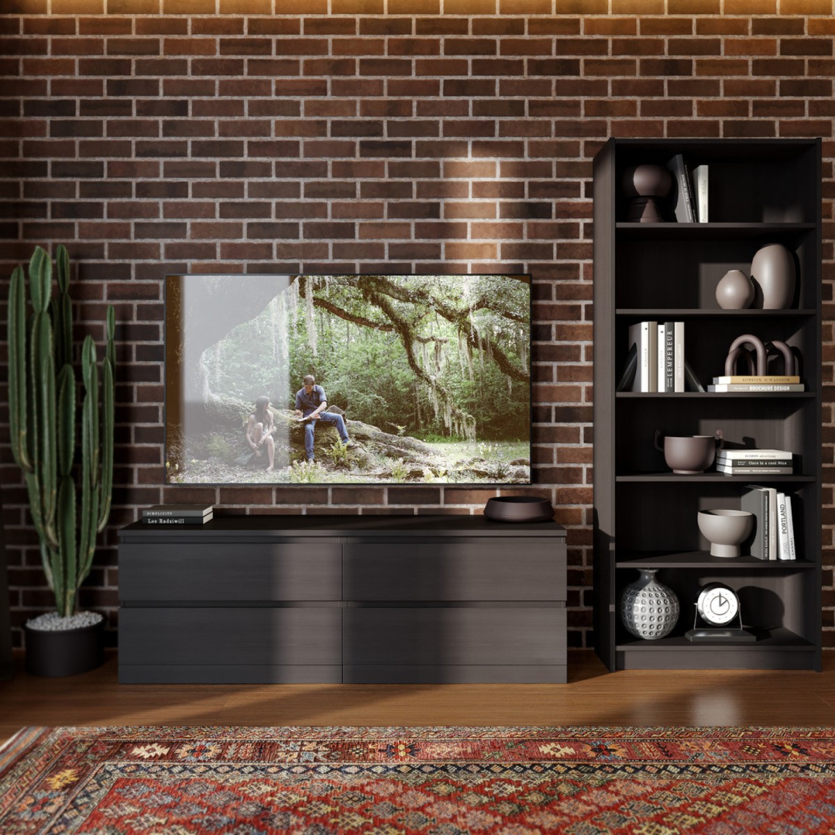 Комод низкий с четырьмя выдвижными ящиками Варма 4Д ИКЕА арт.S00272 Черный ясень 1603x400x584 (ГУД ЛАКК)