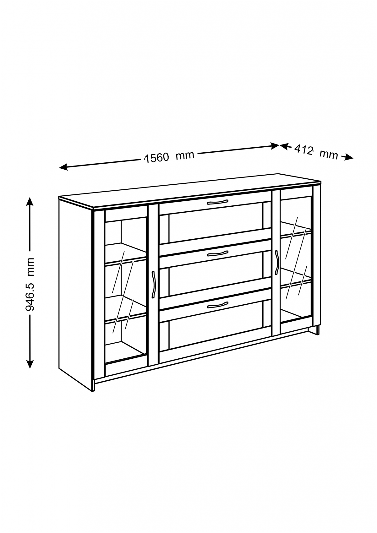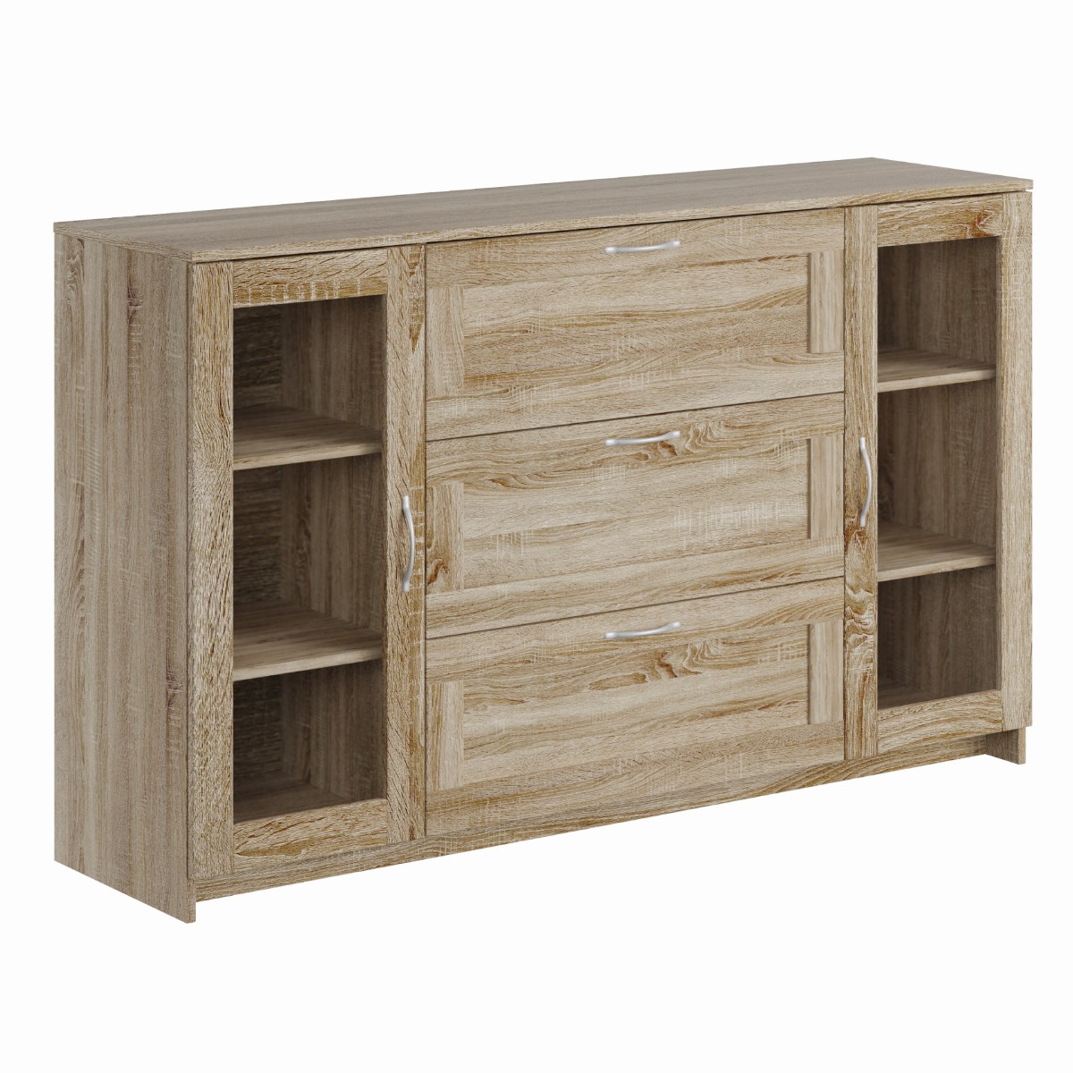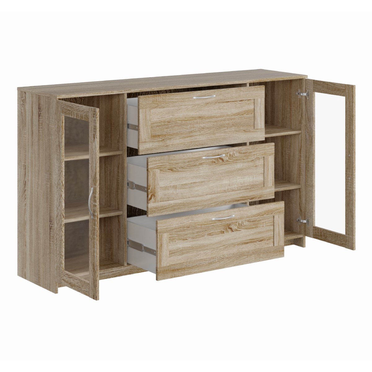 Тумба 2 двери со стеклом и 3 ящика Сириус ИКЕА 2.02.03.370.3 Дуб Сонома 1560x946x412 (ГУД ЛАКК)