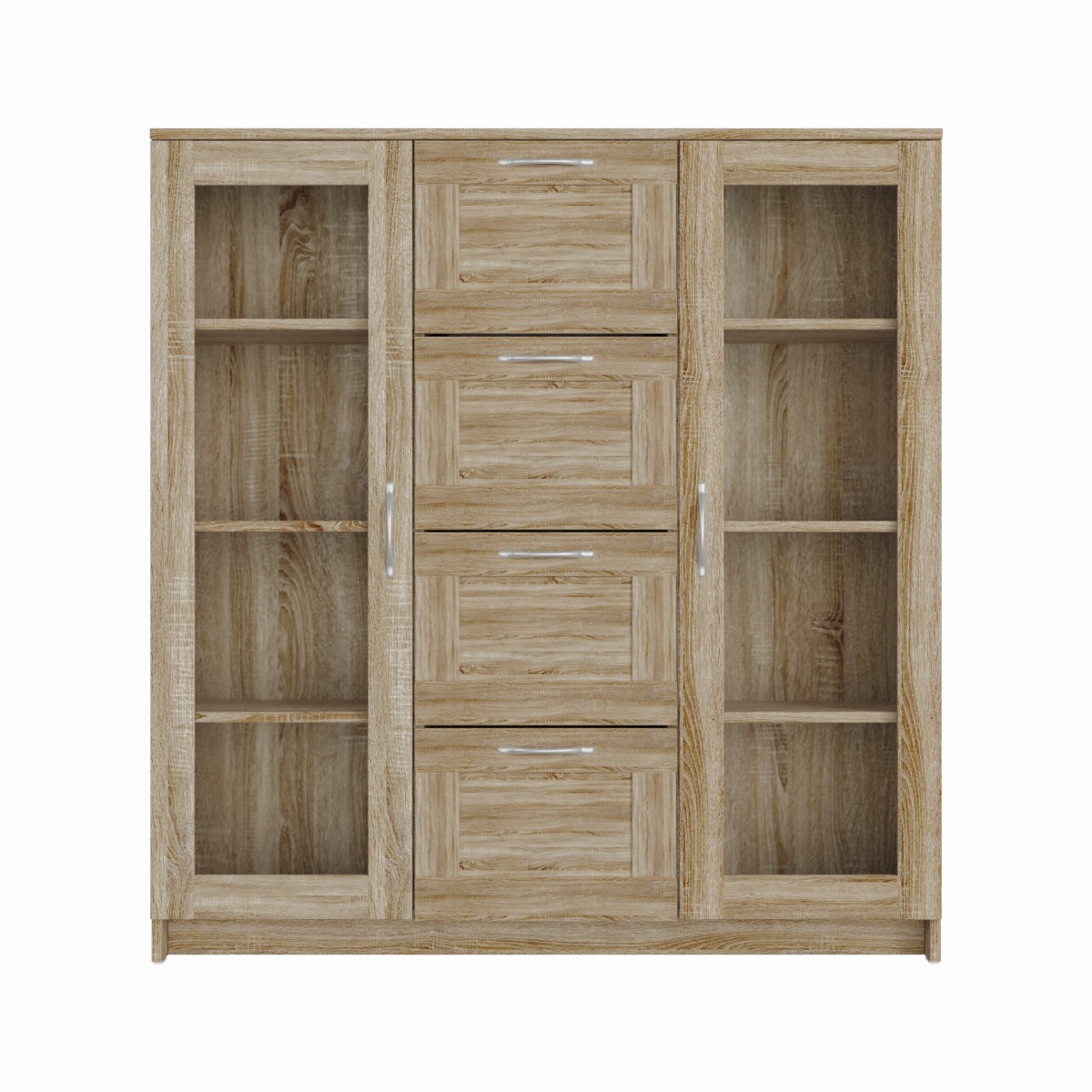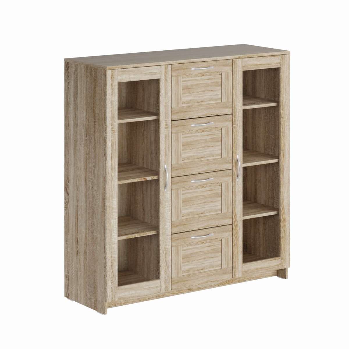 Тумба 2 двери со стеклом и 4 ящика Сириус ИКЕА 2.02.03.400.3 Дуб Сонома 1171x1234x412 (ГУД ЛАКК)