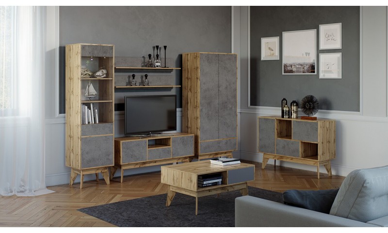 Помимо практичности модульная мебель Хелен обладает такими преимуществами, как простота ухода и низкая восприимчивость к воздействию внешних факторов. Оригинальность модели обеспечивает сочетание природного оттенка «дуб ватан» и современного цвета «бетон Чикаго», пользующегося неизменной популярностью у ценителей современных интерьеров.