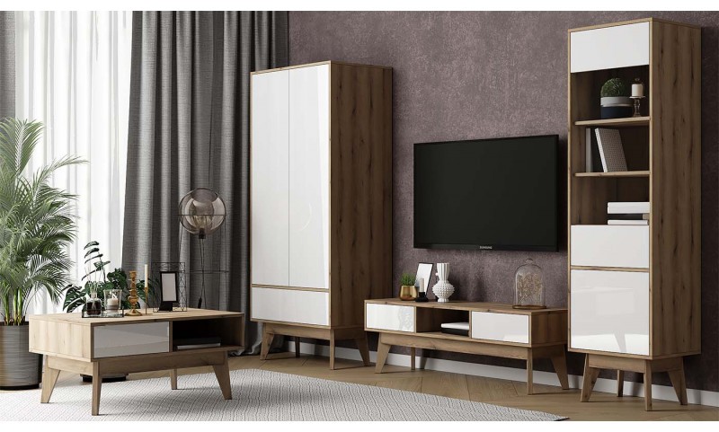 Мебель из коллекции гостиная Хелен – это возможность практичного, комфортного и элегантного обустройства не только просторных, но и небольших помещений. Композиция Х-2 предназначена для компактных гостиных, в которых главную роль играет такое достоинство мебели, как модульность и функциональность. Модели коллекции имеют оптимальное количество полок и выдвижных ящиков, позволяющих организовать комфортное и рациональное хранение вещей и мелких предметов.