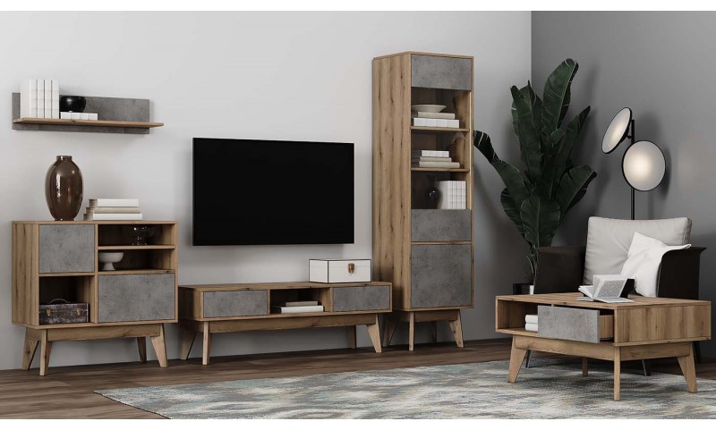 Помимо практичности модульная мебель Хелен обладает такими преимуществами, как простота ухода и низкая восприимчивость к воздействию внешних факторов. Оригинальность модели обеспечивает сочетание природного оттенка «дуб ватан» и современного цвета «бетон Чикаго», пользующегося неизменной популярностью у ценителей современных интерьеров.