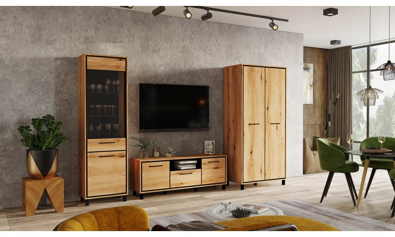 Модульная гостиная Мельбурн М1 Дуб Эвок прибрежный / Черный