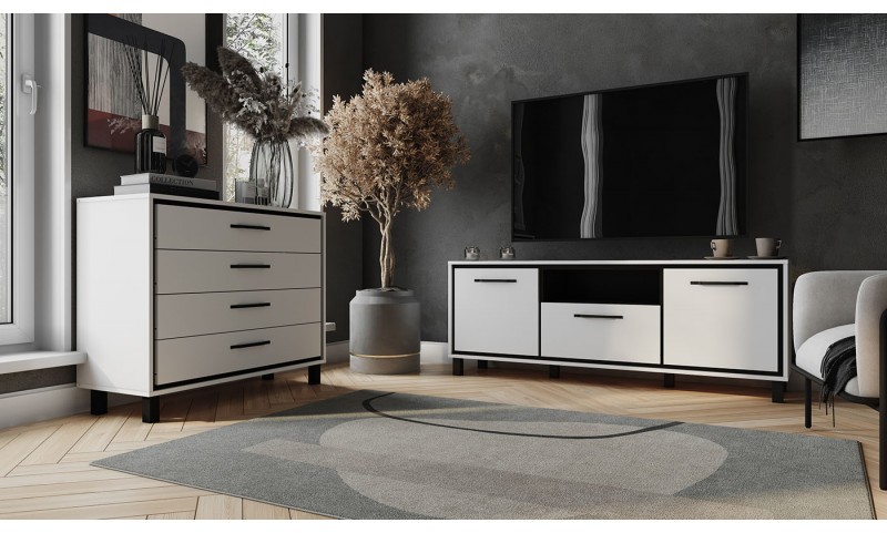 Модульная гостиная Мельбурн М4 Белый матовый / Черный
