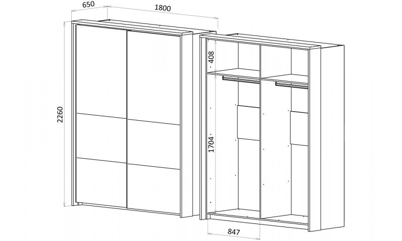 - Двухсекционный шкаф-купе (ШхГхВ): 1800 х 650 х 2260 мм