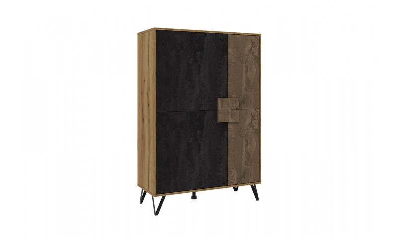 Фасад шкафа: ЛДСП Угольный камень: 16 мм (секция слева) / ЛДСП Ржавый камень: 16 мм (секция справа) / Кромка: 0,4 мм - Декоративные накладки на дверях шкафа: ЛДСП Ржавый камень: 16 мм / Кромка: 0,4 мм