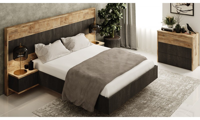 Данная модификация кровати идет с двумя навесными тумбами. В комплектацию входит подъемный механизм и ящик для хранения с разделенными секциями. Тумбы с одним ящиком полного выдвижения на шариковых направляющих.