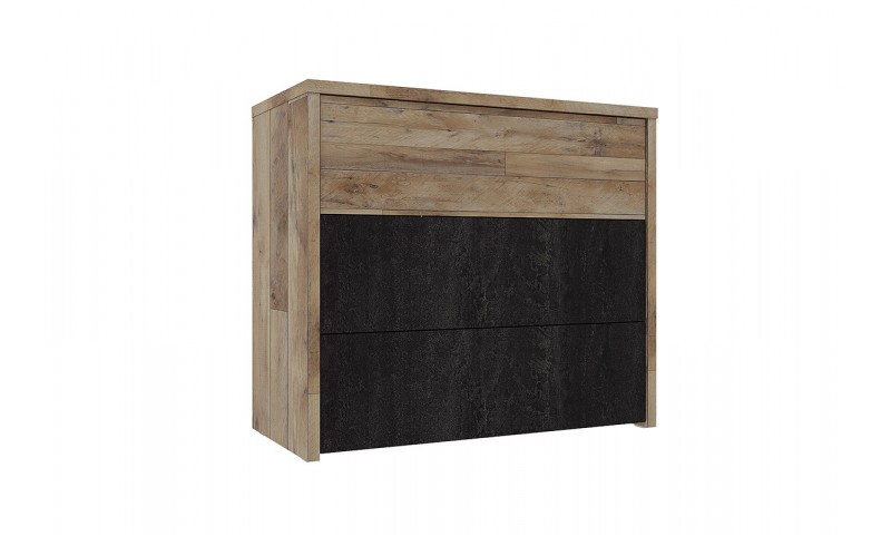 Комод с тремя ящиками полного выдвижения на шариковых направляющих. Лицевая фурнитура отсутствует. Механизм открывания: «Push-to-open». Максимальная нагрузка на полку: до 5 кг (равномерного распределения).