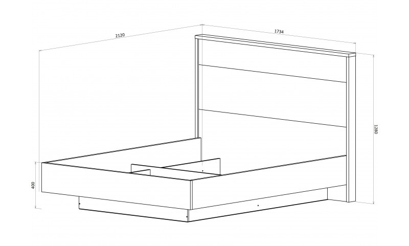 - Двуспальная кровать (ШхГхВ): 1734 х 2120 х 1280 мм