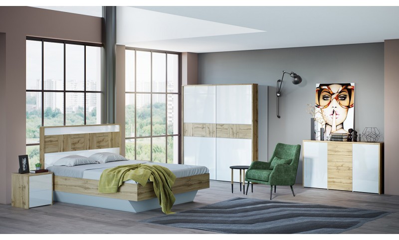 Спальня Аризона, Композиция №2 дуб ватан/белый глянец