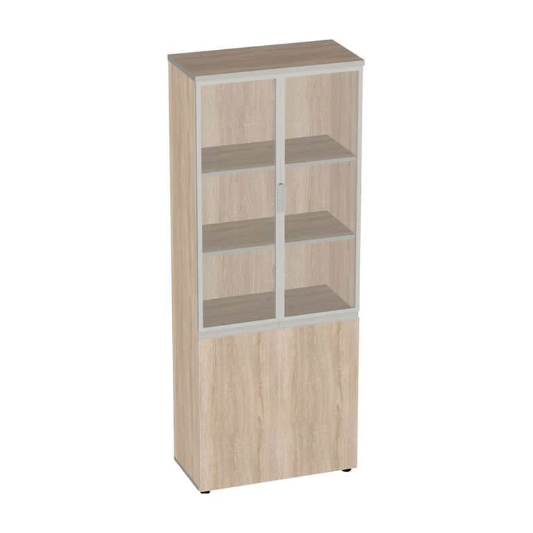 Шкаф для документов широкий высокий со стеклом в алюминиевой раме низкими дверьми Bella Vita для кабинета руководителя BV-2.2.4 777х387х1980 Дуб Сонома