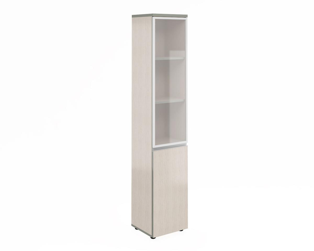 Шкаф для документов узкий высокий со стеклом в алюминиевой раме с низкой дверью Bella Vita для кабинета руководителя BV-2.6.4 391х387х1980 Дуб Сонома