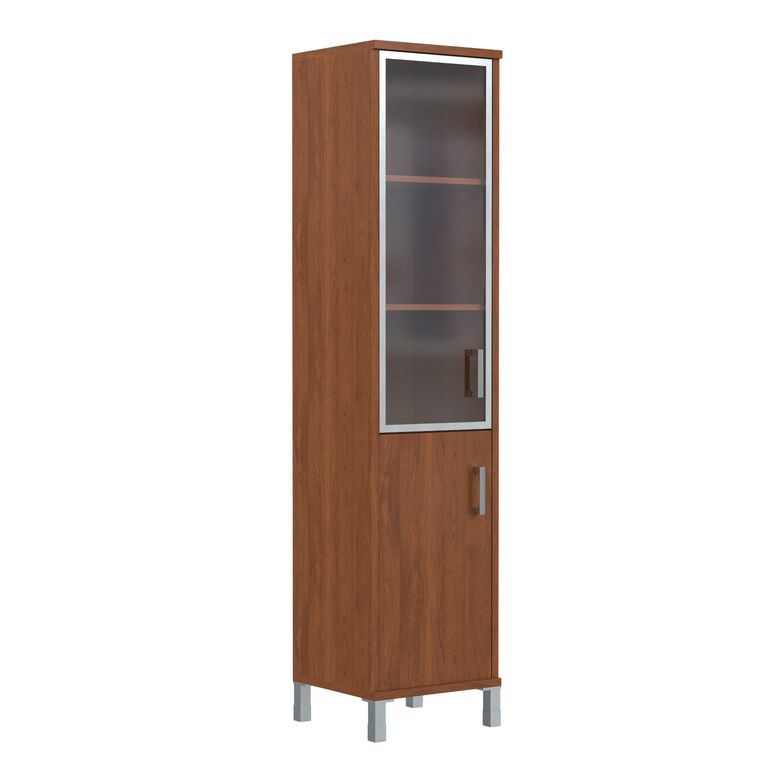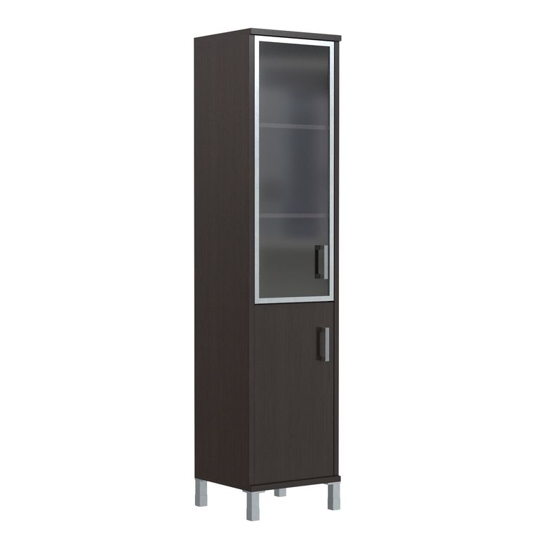 Шкаф-колонка с левой стеклянной дверкой в алюминиевой раме и низкой ЛДСП дверкой для документов В-431.4L Венге магия Skyland Born 475х450х2054 Венге магия