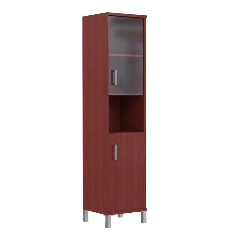Шкаф-колонка высокая с малой стеклянной дверью и глухой для документов B-431.10 Бургунди Skyland Born 475х450х2054 Бургунди