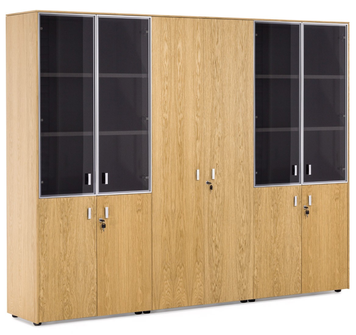 Фасады дверей укомплектованы ручками под цвет металлических опор письменных столов — хромированные или черные (порошковая покраска).