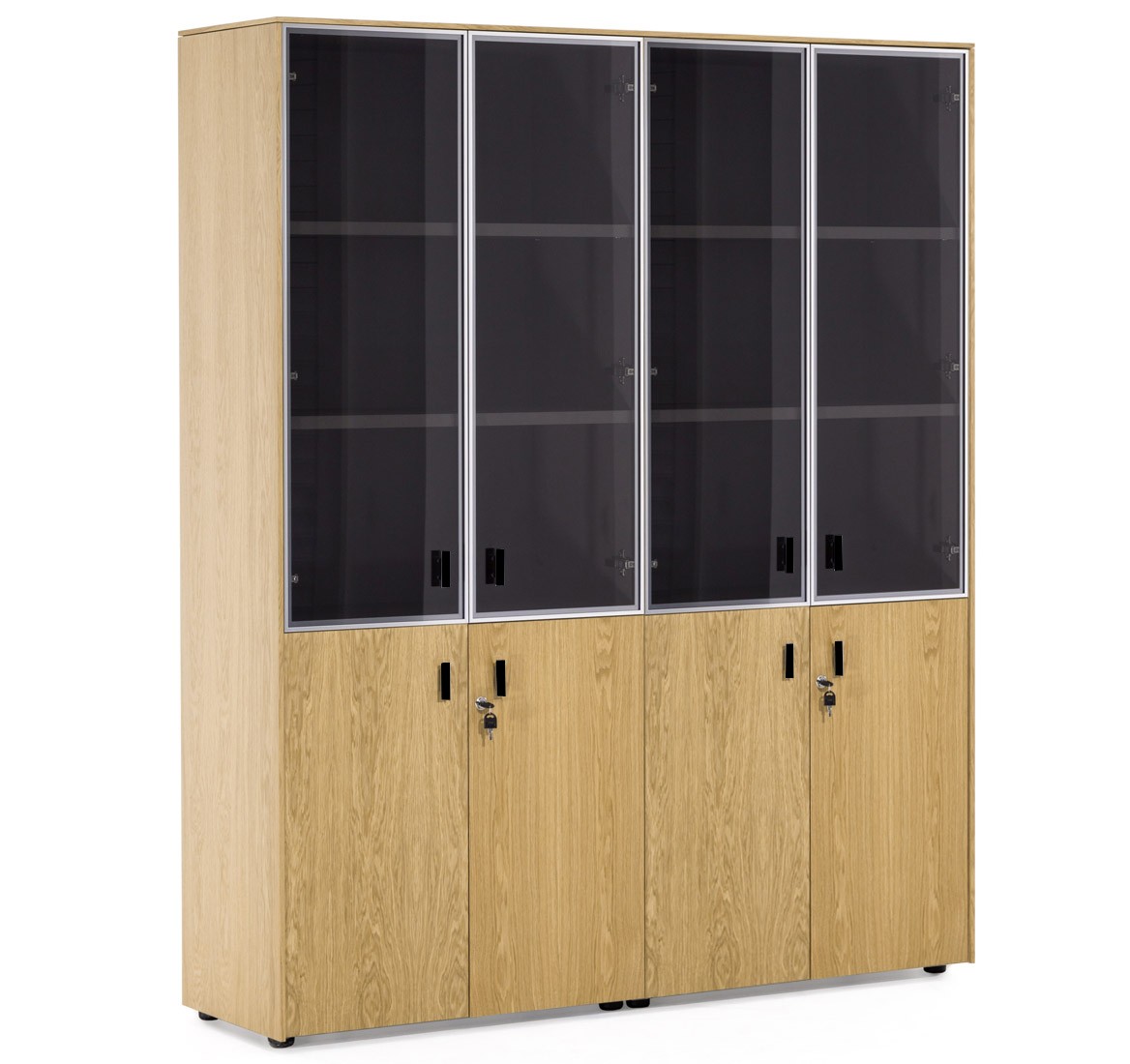 Фасады дверей укомплектованы ручками под цвет металлических опор письменных столов — хромированные или черные (порошковая покраска).