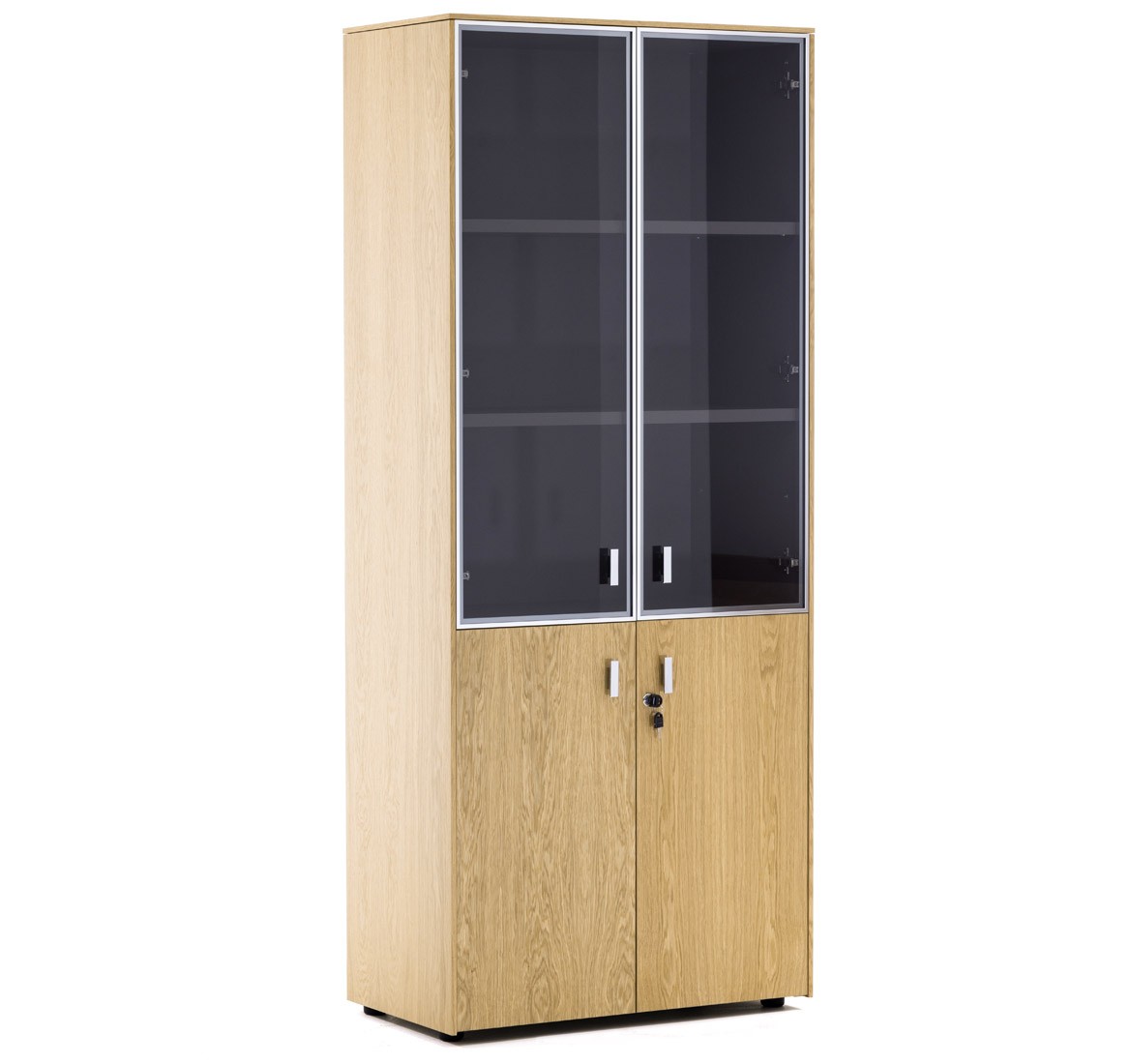 Фасады дверей укомплектованы ручками под цвет металлических опор письменных столов — хромированные или черные (порошковая покраска).
