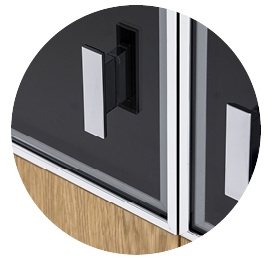 Фасады дверей укомплектованы ручками под цвет металлических опор письменных столов — хромированные или черные (порошковая покраска).
