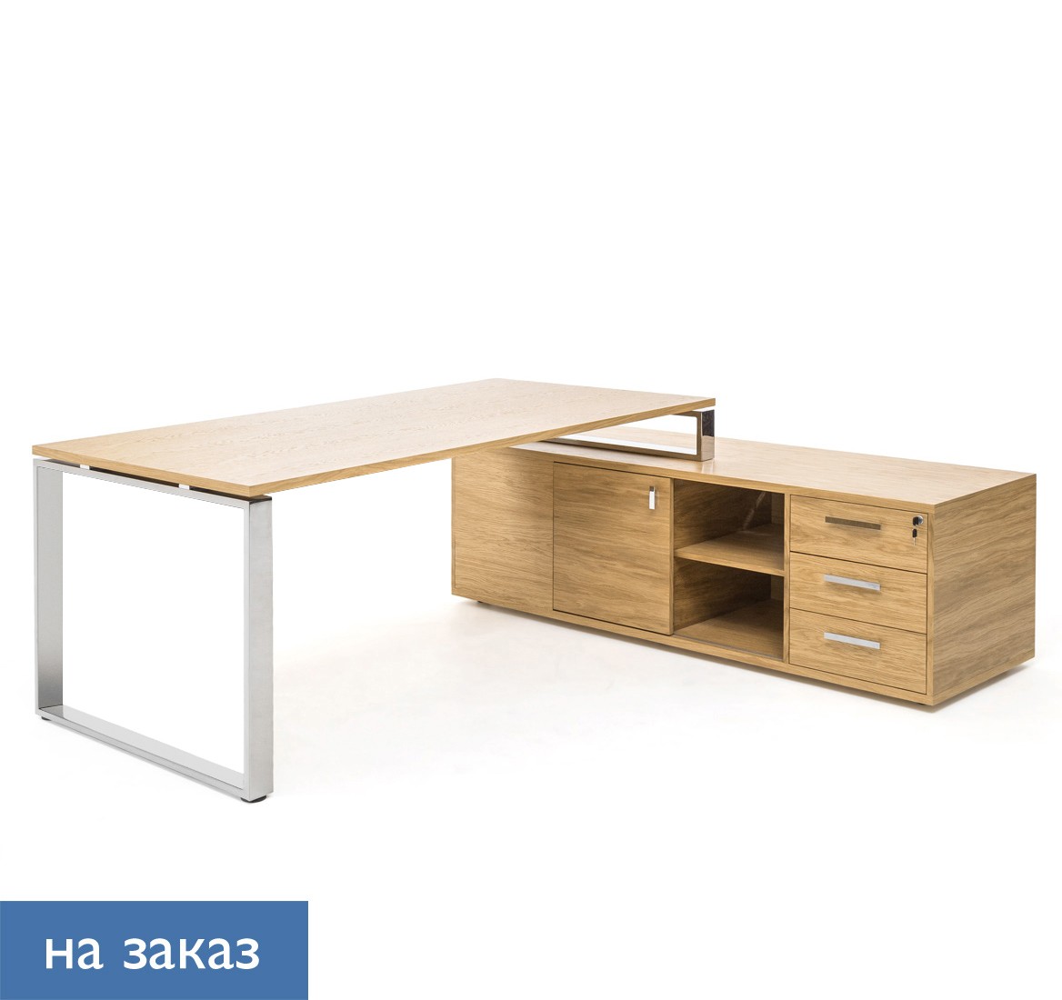 На выбор предлагается два варианта письменных столов — на металлических опорах и на опорной тумбе.