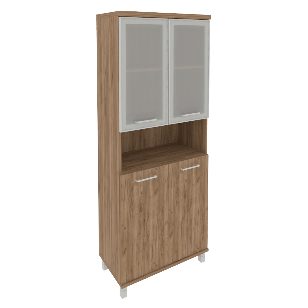 Шкаф для документов высокий широкий (2 низкие двери ЛДСП, 2 низкие двери стекло в раме) FIRST KST-1.4R 800х430х2060 Дуб Табак Дуб табак