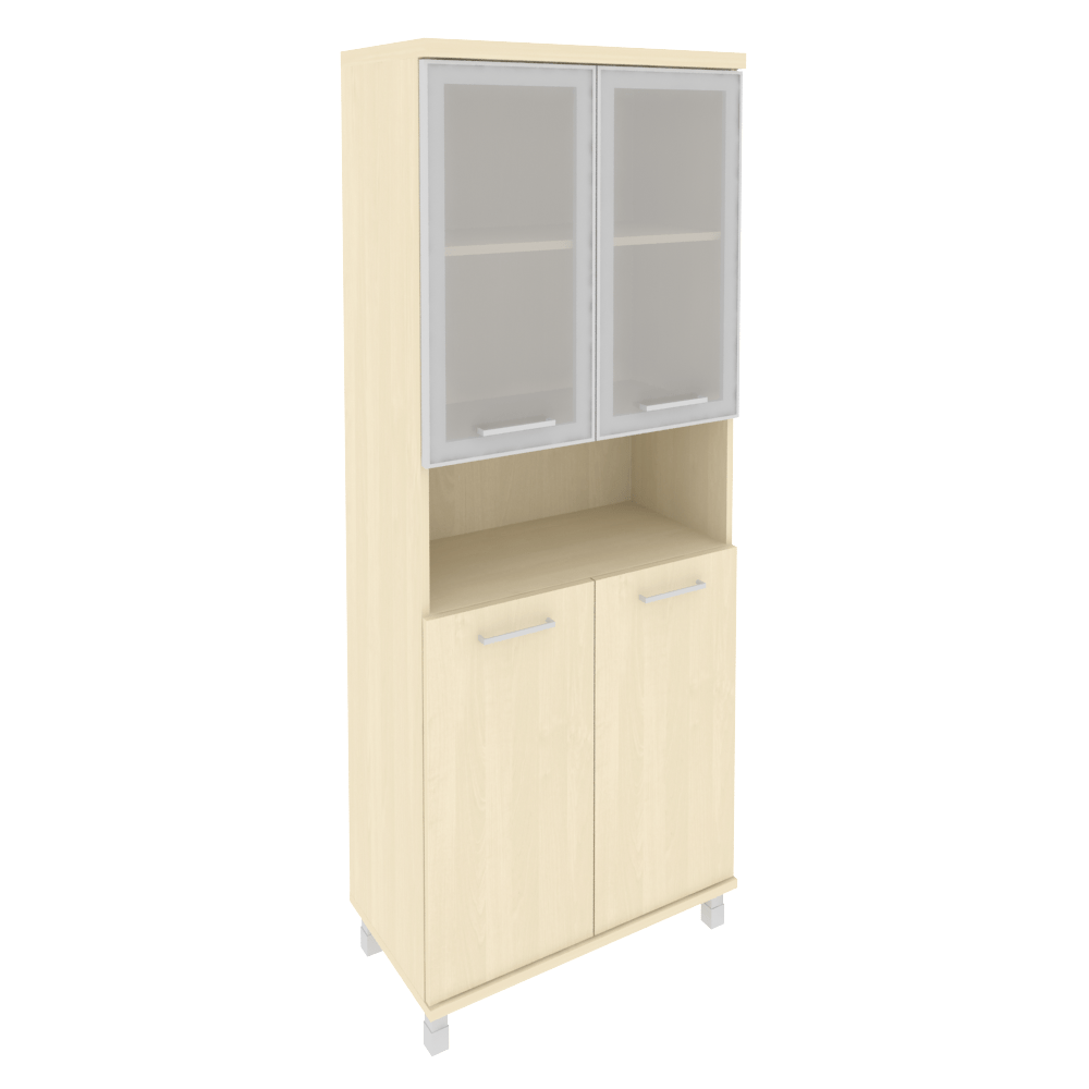 Шкаф для документов высокий широкий (2 низкие двери ЛДСП, 2 низкие двери стекло в раме) FIRST KST-1.4R 800х430х2060 Клён Клен