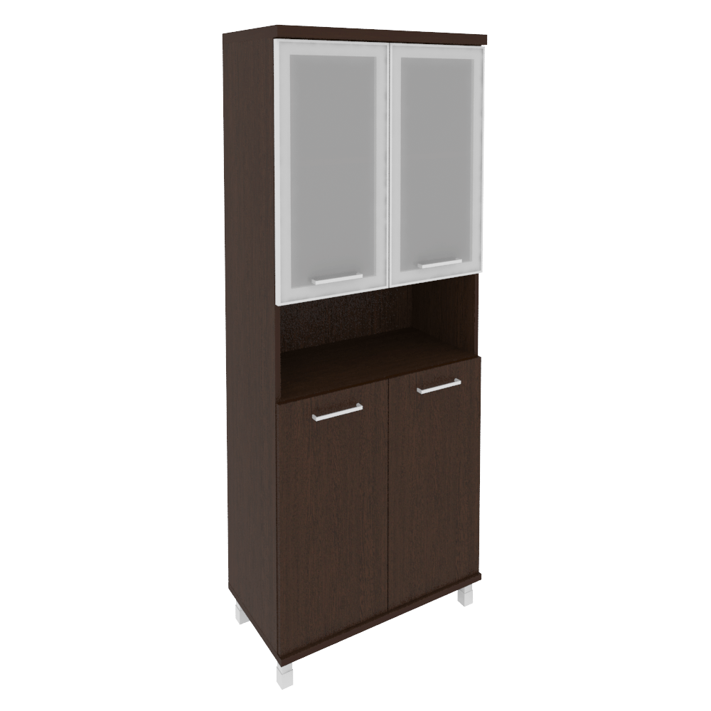 Шкаф для документов высокий широкий (2 низкие двери ЛДСП, 2 низкие двери стекло в раме) FIRST KST-1.4R 800х430х2060 Венге Венге Цаво