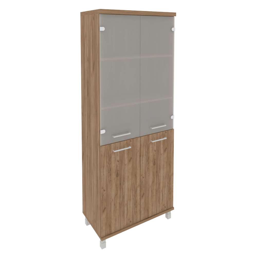 Шкаф для документов высокий широкий (2 низкие двери ЛДСП, 2 средние двери стекло) FIRST KST-1.2 800х430х2060 Дуб Табак Дуб табак