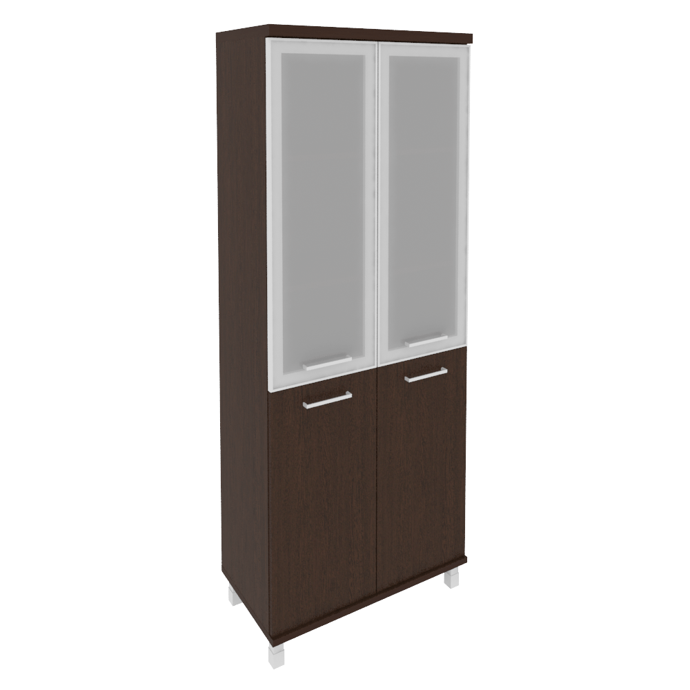 Шкаф для документов высокий широкий (2 низкие двери ЛДСП, 2 средние двери стекло в раме) FIRST KST-1.2 800х430х2060 Венге Венге Цаво