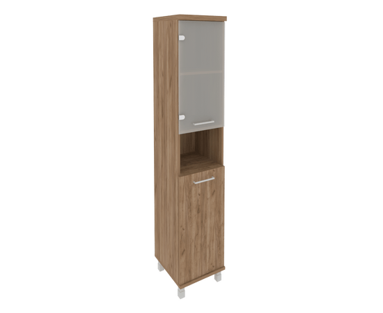 Шкаф для документов высокий узкий левый/правый (1 низкая дверь ЛДСП, 1 низкая дверь стекло) FIRST KSU-1.4 400х430х2060 Венге Венге Цаво