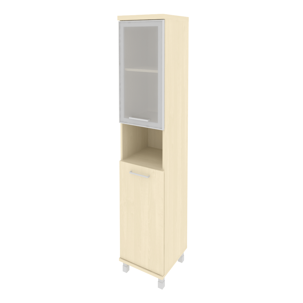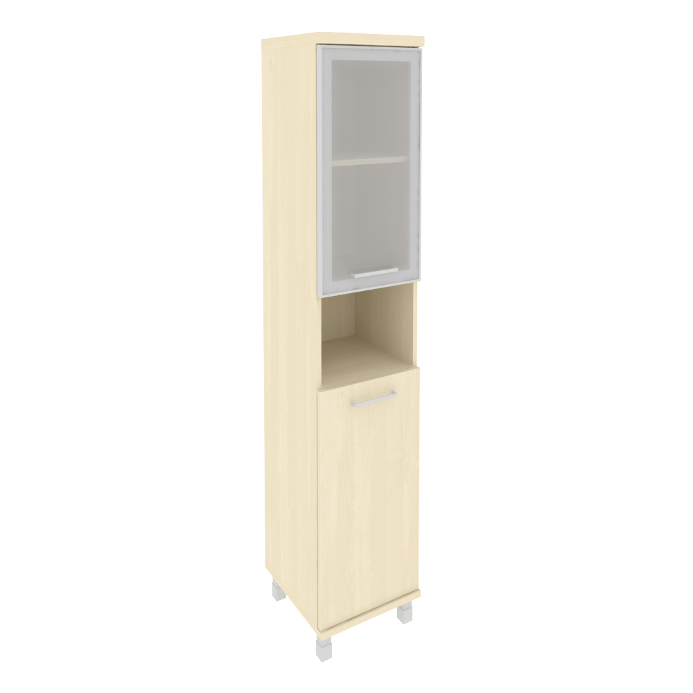 Шкаф для документов высокий узкий левый/правый (1 низкая дверь ЛДСП, 1 низкая дверь стекло в раме) FIRST KSU-1.4R 400х430х2060 Клён Клен