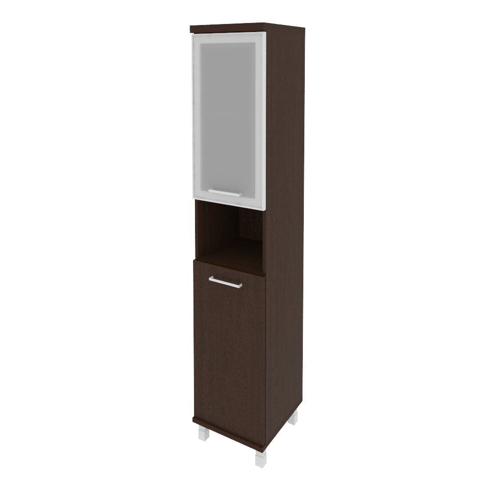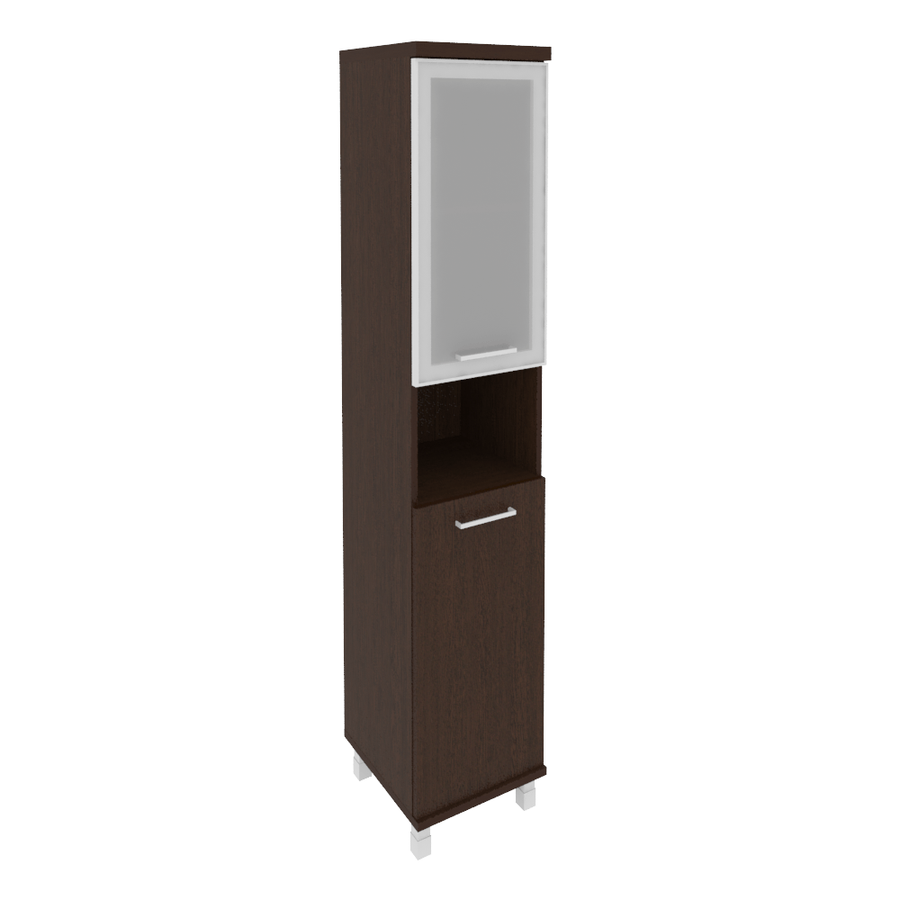 Шкаф для документов высокий узкий левый/правый (1 низкая дверь ЛДСП, 1 низкая дверь стекло в раме) FIRST KSU-1.4R 400х430х2060 Венге Венге Цаво