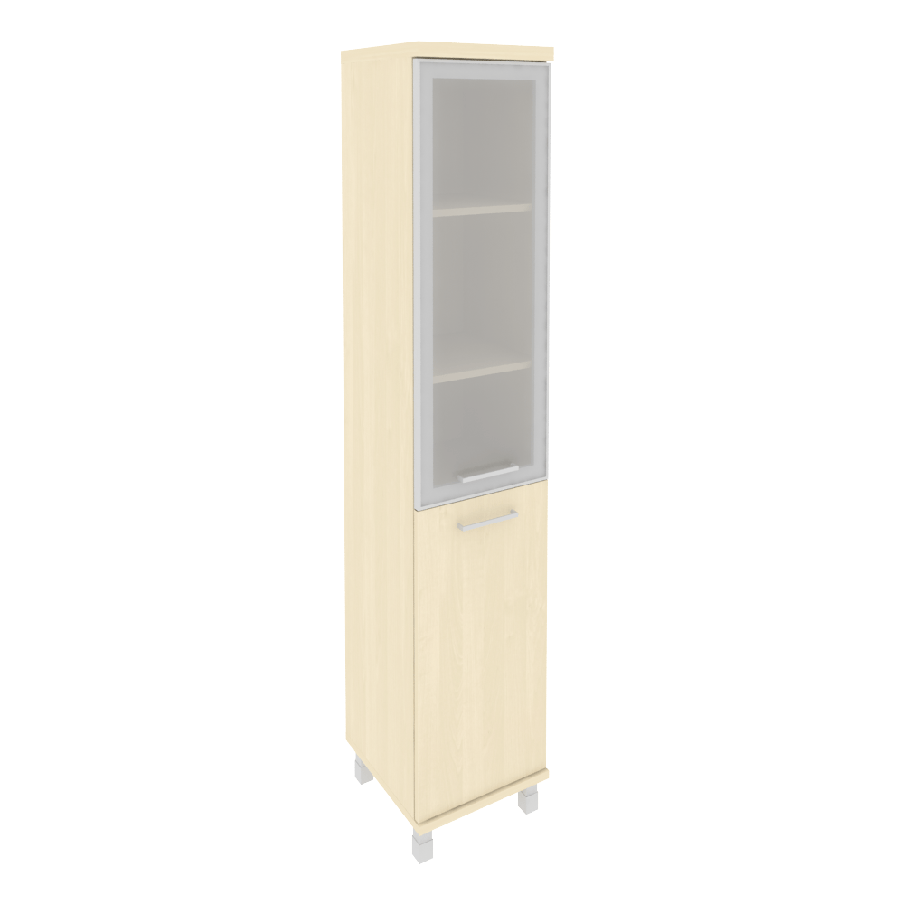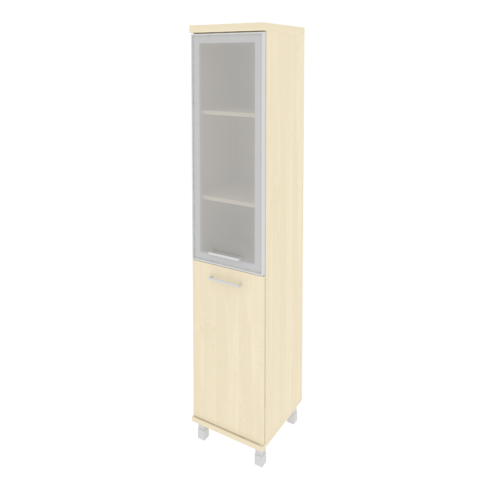 Шкаф для документов высокий узкий левый (1 низкая дверь ЛДСП, 1 средняя дверь стекло в раме) FIRST KSU-1.2R 400х430х2060 Клён Клен
