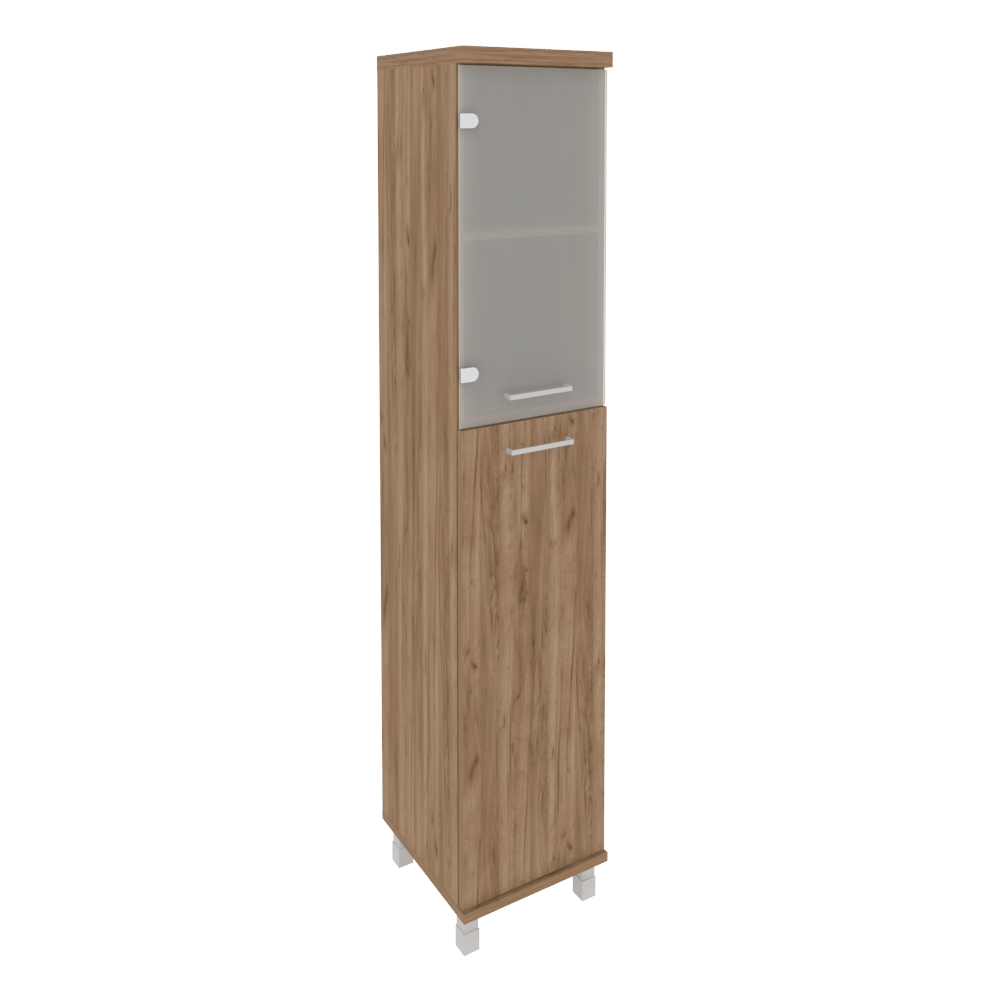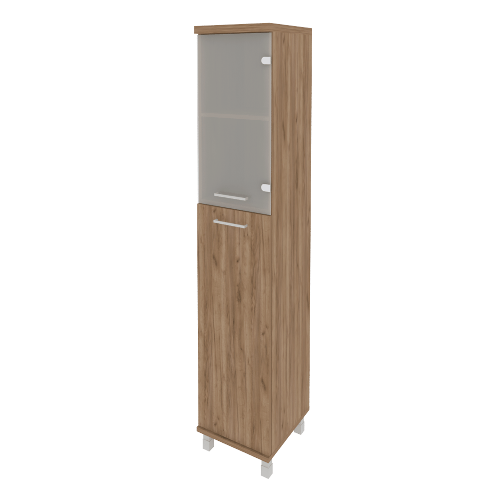Шкаф для документов высокий узкий левый/правый (1 средняя дверь ЛДСП, 1 низкая дверь стекло) FIRST KSU-1.7 400х430х2060 Дуб Табак Дуб табак