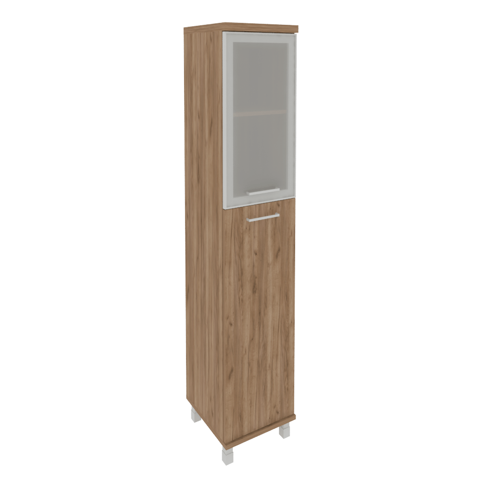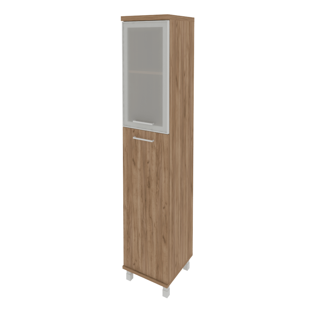 Шкаф для документов высокий узкий левый/правый (1 средняя дверь ЛДСП, 1 низкая дверь стекло в раме) FIRST KSU-1.7R 400х430х2060 Дуб Табак Дуб табак