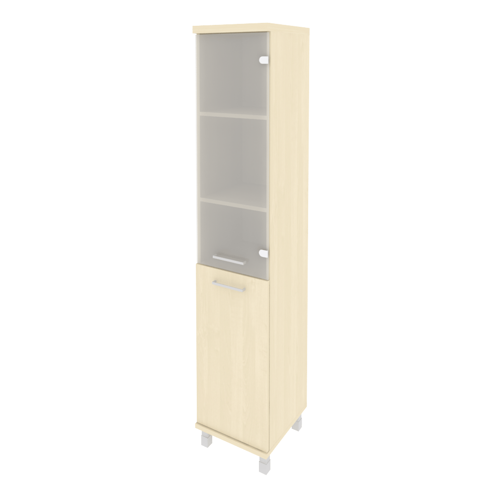 Шкаф для документов высокий узкий правый (1 низкая дверь ЛДСП, 1 средняя дверь стекло) FIRST KSU-1.2R 400х430х2060 Клён Клен