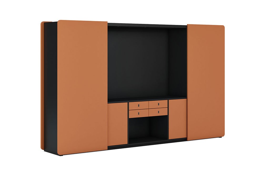 Красота форм и линий мебели BUGATTI по-новому раскрывается в сочетании благородного оранжевого оттенка кожи на столешнице и фасадах и матовой черной покраски. Столы, шкафы и низкие комоды коллекции сформируют элегантный и сдержанный интерьер.