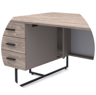 Опорные тумбы с выдвижными ящиками. Ящики тумбы оснащены направляющими Hettich скрытого монтажа с полным выдвижением и системой плавного закрывания.
