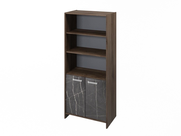 Шкаф для документов широкий с 4 полками полуоткрытый Festus FI-672.G Орех Пацифик Табак / Камень Пьетра Гриджиа черный 800x460x1861 (Экспро)
