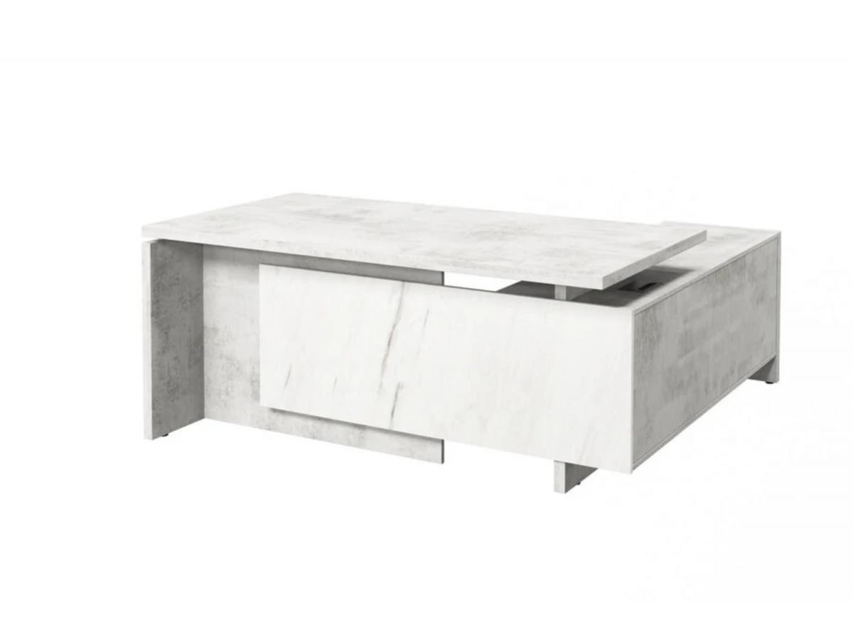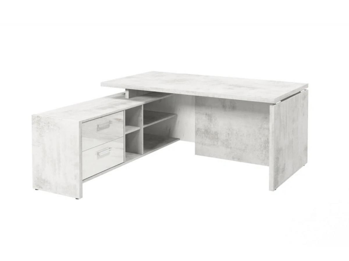 Стол с опорной тумбой левый Festus FI-117L.GG Хромикс белый / Мрамор леванто белый 1700x1800x750 (Экспро)