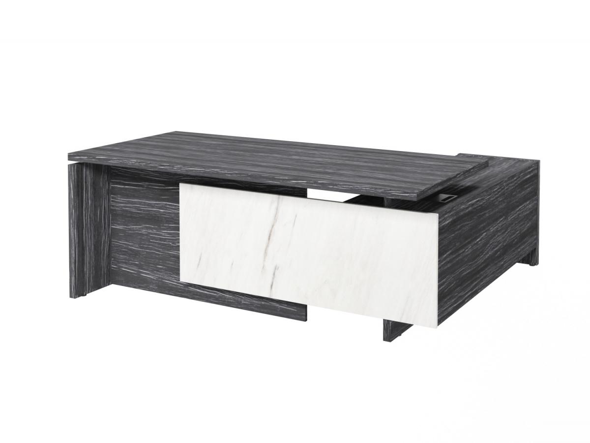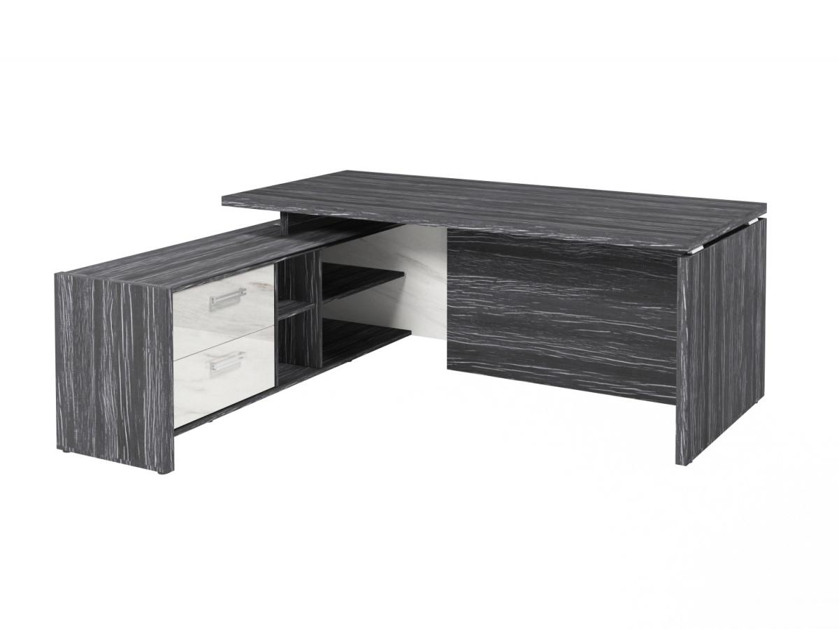 Стол для руководителя с опорной тумбой левый Festus FI-119L.GG Древесина Графит / Мрамор Леванто белый 1900x1800x750 (Экспро)