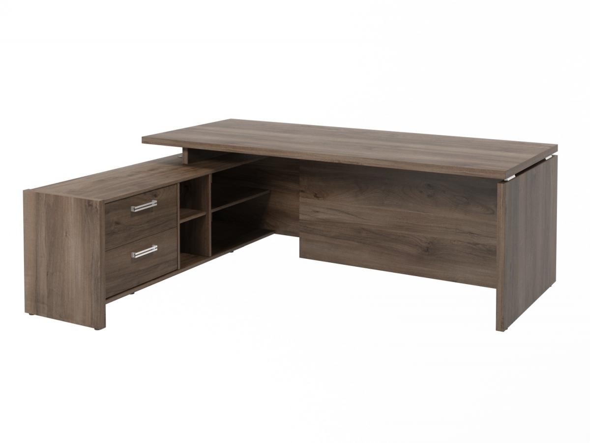 Стол для руководителя с опорной тумбой левый Festus FI-121L.DD Орех Пацифик Табак 2100x1800x750 (Экспро)