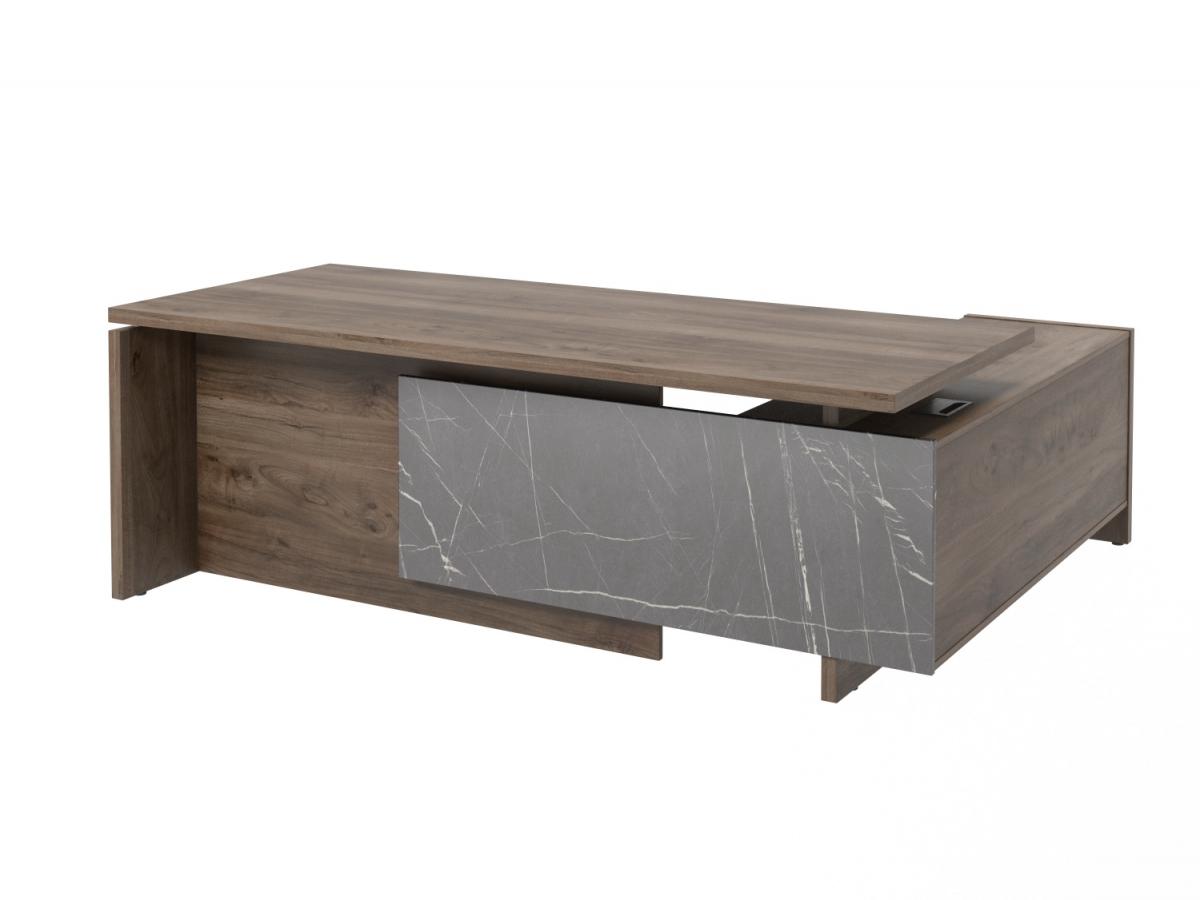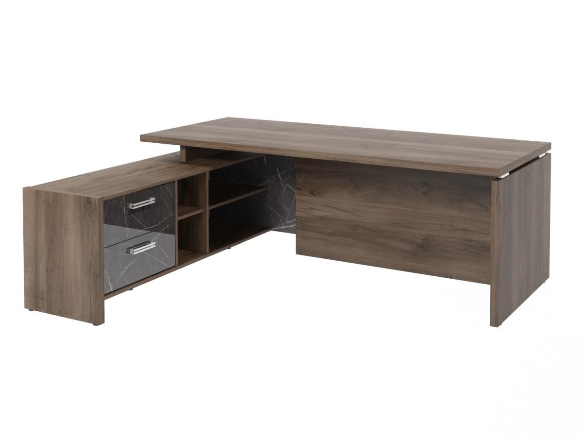 Стол для руководителя с опорной тумбой левый Festus FI-121L.DD Орех Пацифик Табак / Камень Пьетра Гриджиа черный 2100x1800x750 (Экспро)