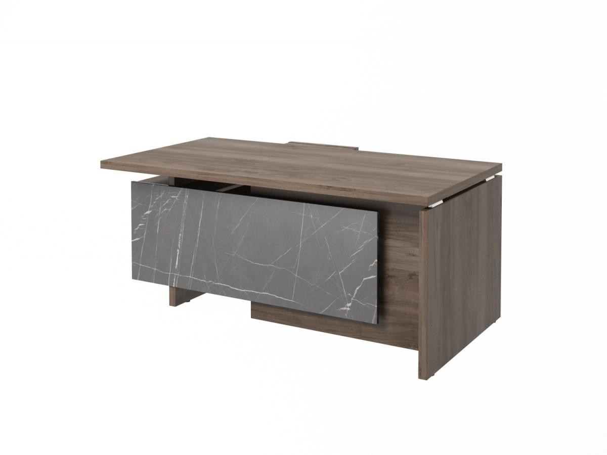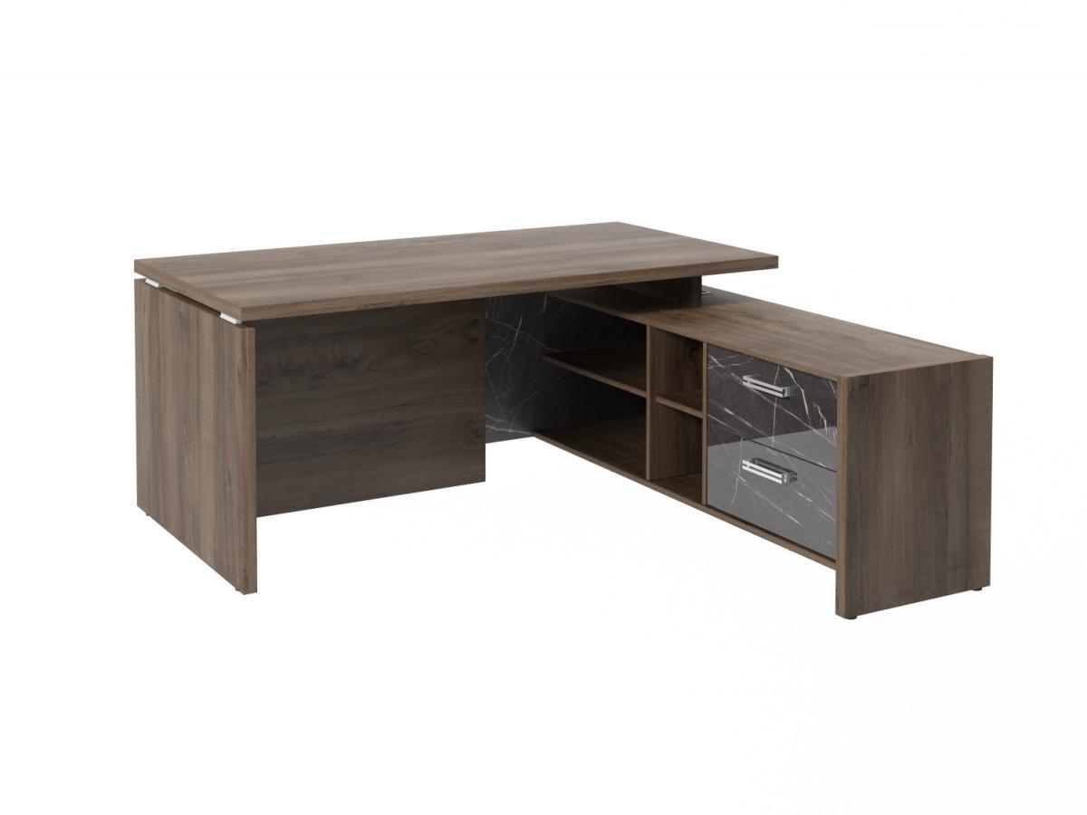 Стол для руководителя с опорной тумбой правый Festus FI-117R.DD Орех Пацифик Табак / Камень Пьетра Гриджиа черный 1700x1800x750 (Экспро)