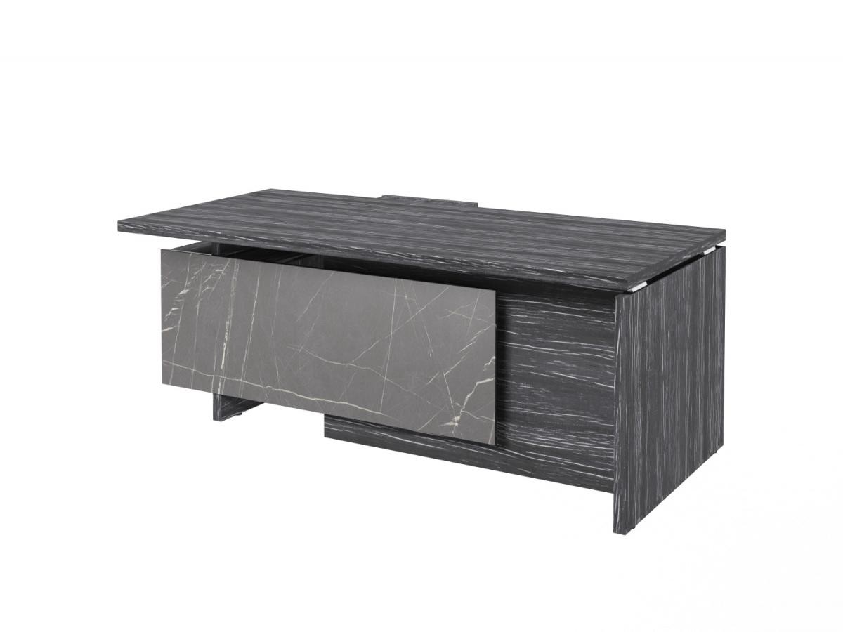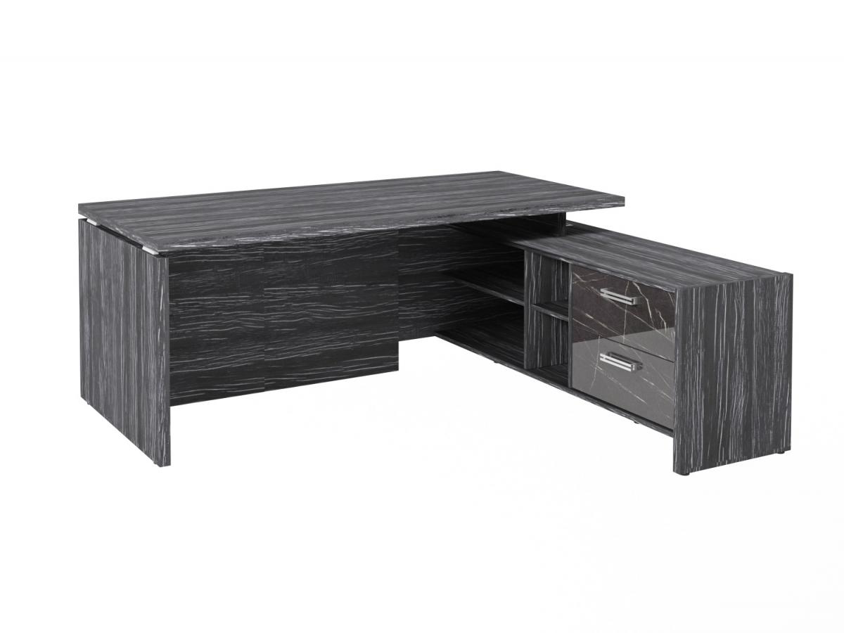 Стол для руководителя с опорной тумбой правый Festus FI-119R.GG Древесина Графит / Камень Пьетра Гриджиа черный 1900x1800x750 (Экспро)