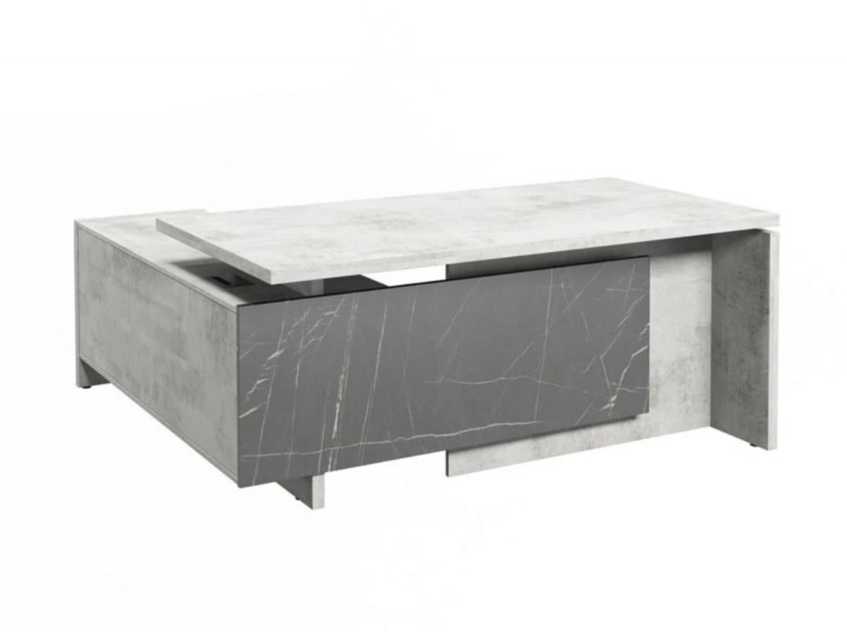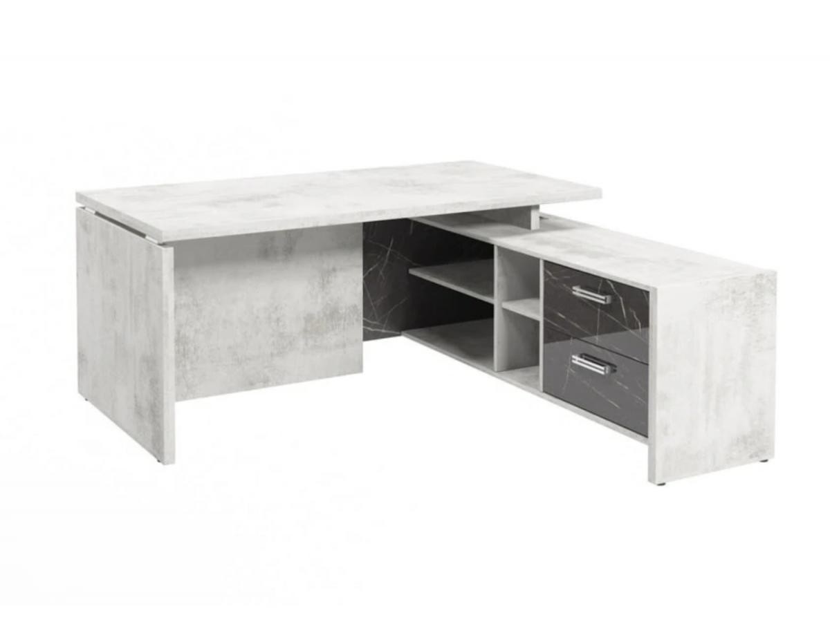 Стол для руководителя с опорной тумбой правый Festus FI-119R.GG Хромикс белый / Камень Пьетра Гриджиа черный 1900x1800x750 (Экспро)