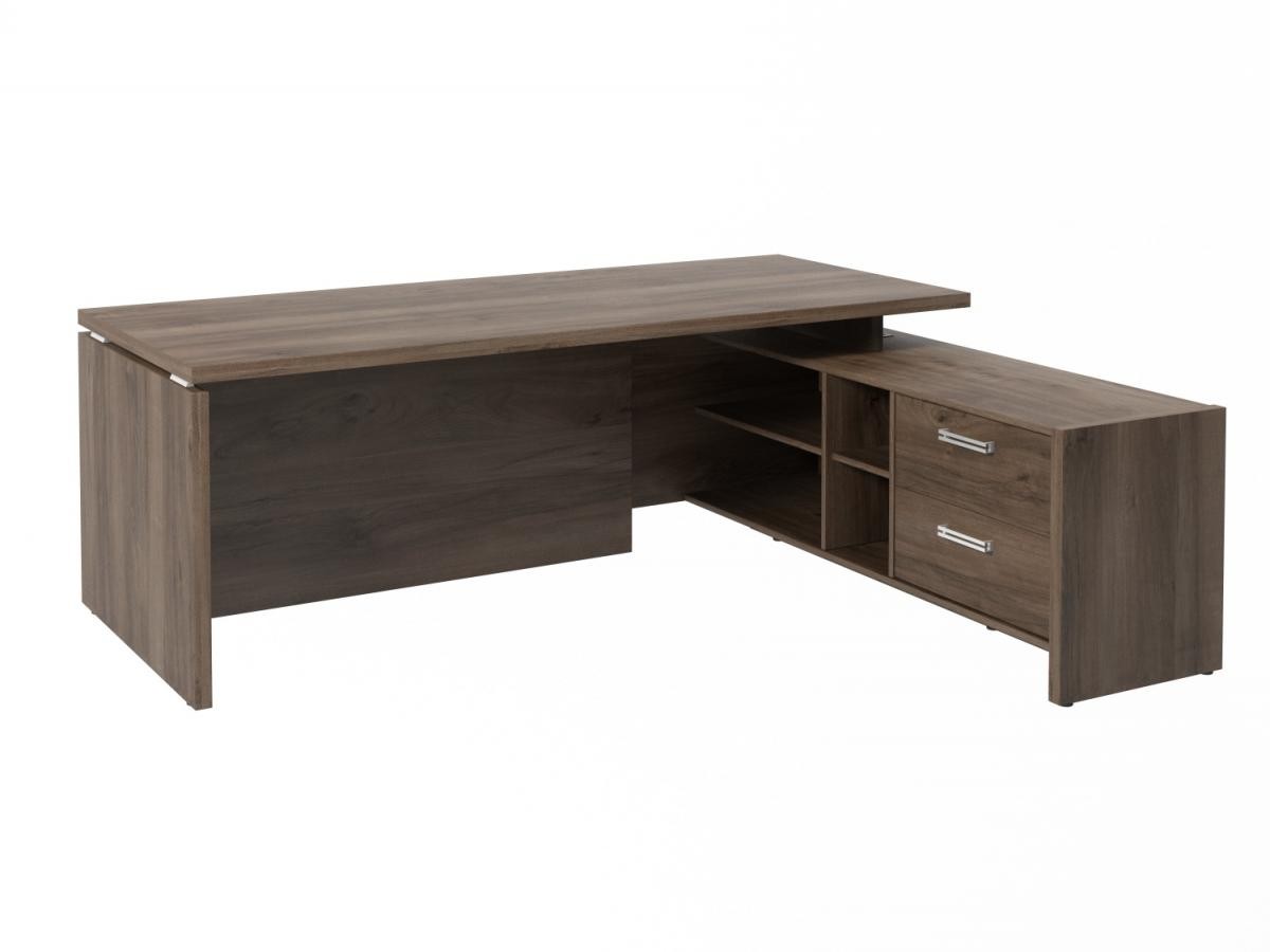 Стол для руководителя с опорной тумбой правый Festus FI-121R.DD Орех Пацифик Табак 2100x1800x750 (Экспро)
