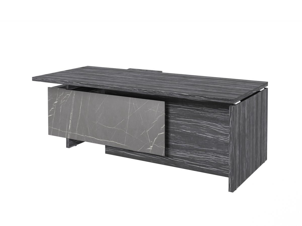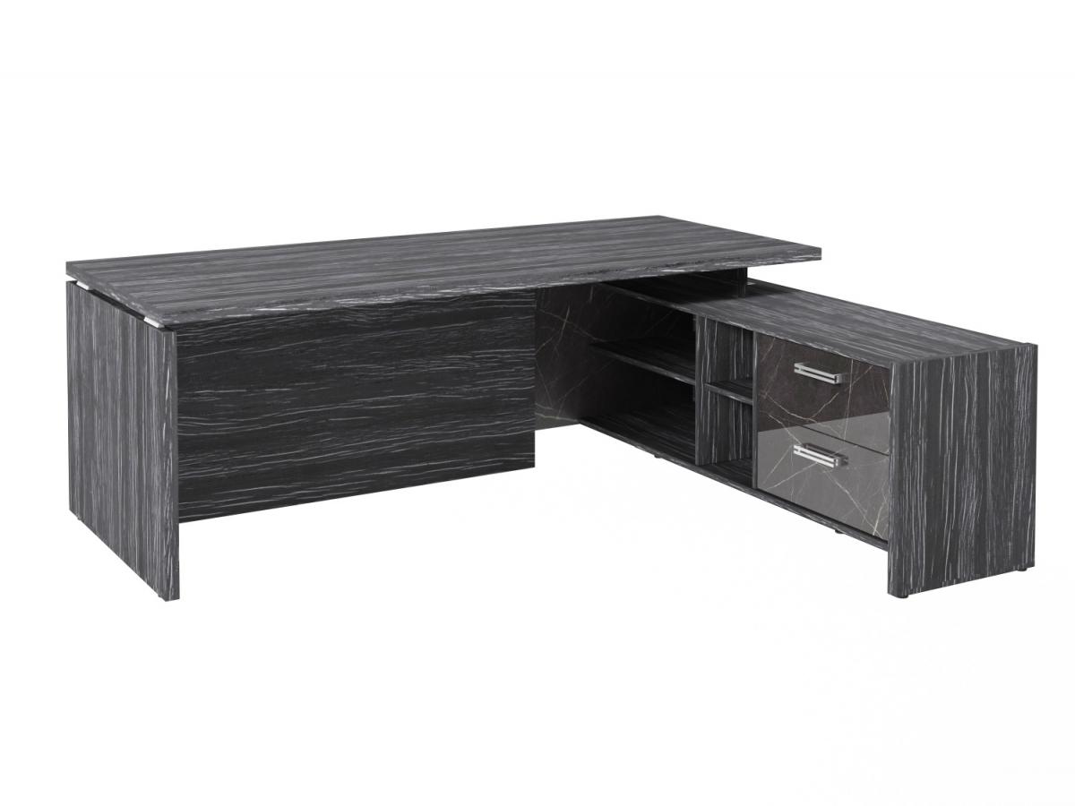 Стол для руководителя с опорной тумбой правый Festus FI-121R.GG Древесина Графит / Камень Пьетра Гриджиа черный 2100x1800x750 (Экспро)