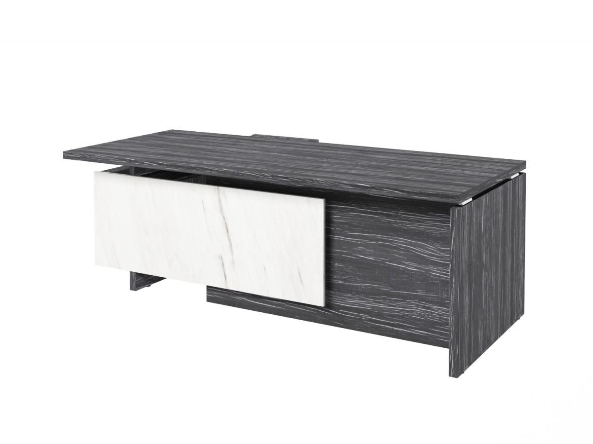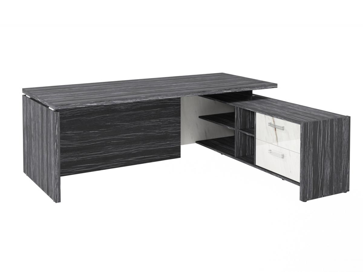 Стол для руководителя с опорной тумбой правый Festus FI-121R.GG Древесина Графит / Мрамор Леванто белый 2100x1800x750 (Экспро)