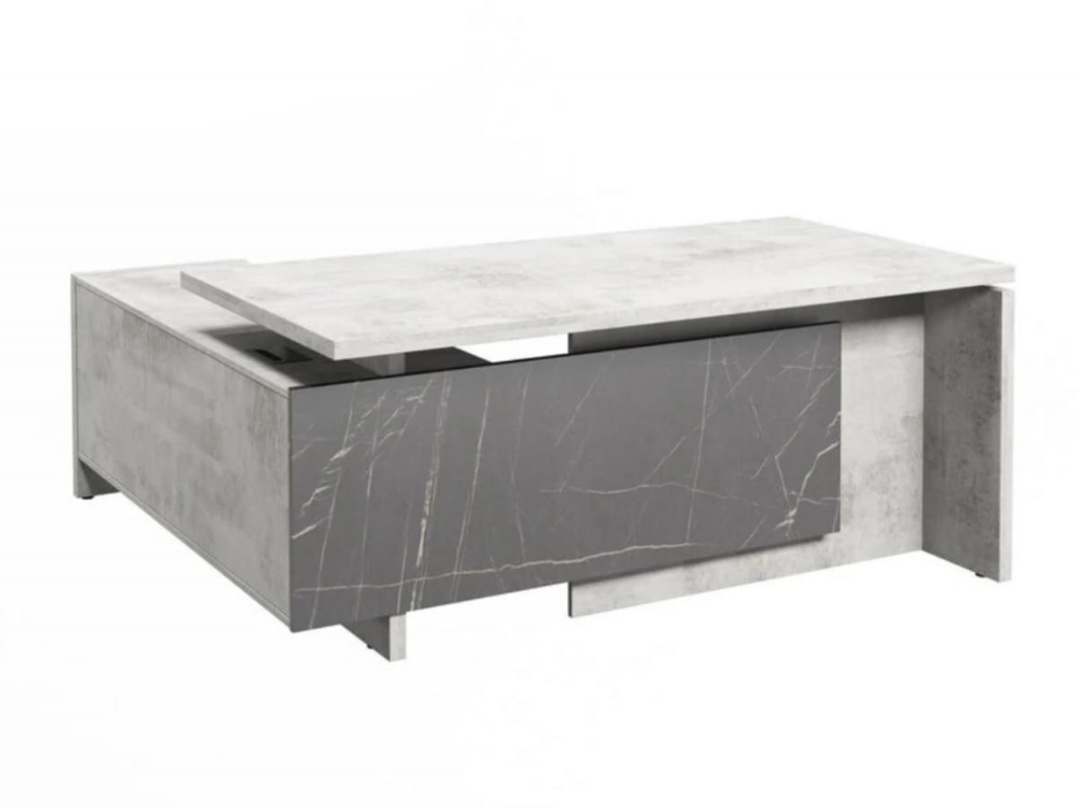Стол для руководителя с опорной тумбой правый Festus FI-121R.GG Хромикс белый / Камень Пьетра Гриджиа черный 2100x1800x750 (Экспро)