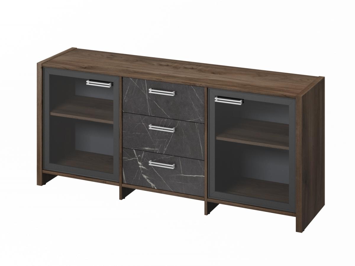Тумба для документов трехсекционная Festus FI-13-02.G Орех Пацифик Табак / Камень Пьетра Гриджиа черный 1804x460x806 (Экспро)